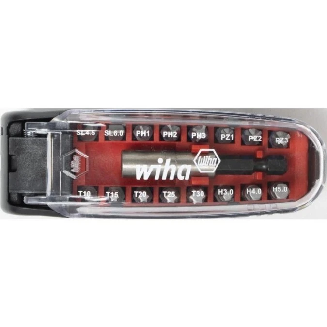 Zestaw bitów Croco Box 17cz. Nr 35565 Zestaw 17 najbardziej popularnych bitów w poręcznym, kieszonkowym opakowaniu. W skład zestawu wchodzą bity: płaskie 4 i 6 krzyżowe Philips 1xPH1 1xPH2 1xPH3 krzyżowe Pozidriv 1xPZ1 1xPZ2 1xPZ3 torx T10 T15 T20 T25 T30 imbus sześciokątne 1x3 1x4 1x5 oraz uniwersalny uchwyt do bitów Dzięki dodatkowym otworom w opakowaniu zestaw może posłużyć jako wkrętak lub klucz typu imbusowego.