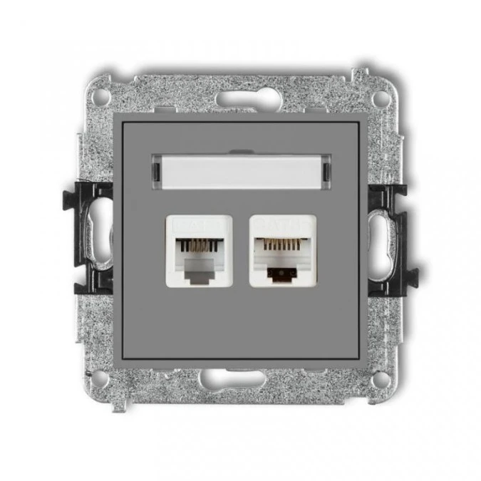 MINI Gniazdo telefoniczne RJ11 + gniazdo komputerowe RJ45 kat. 5e 8-stykowy beznarzędziowy szary mat 27MGTK