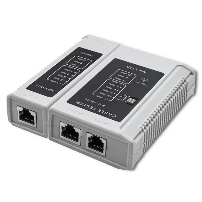 Urządzenie weryfikuje poprawność połączenia kabli sieciowych na długich odcinkach. Tester sieci kablowych RJ-12 i RJ-45 to jedno z takich narzędzi, które odgrywa kluczową rolę w diagnostyce, utrzymaniu i naprawach sieci telekomunikacyjnych. - pomoc w lokalizacji i identyfikacji ewentualnych usterek w kablu - sprawdzanie poprawności połączenia między poszczególnymi przewodami w kablu