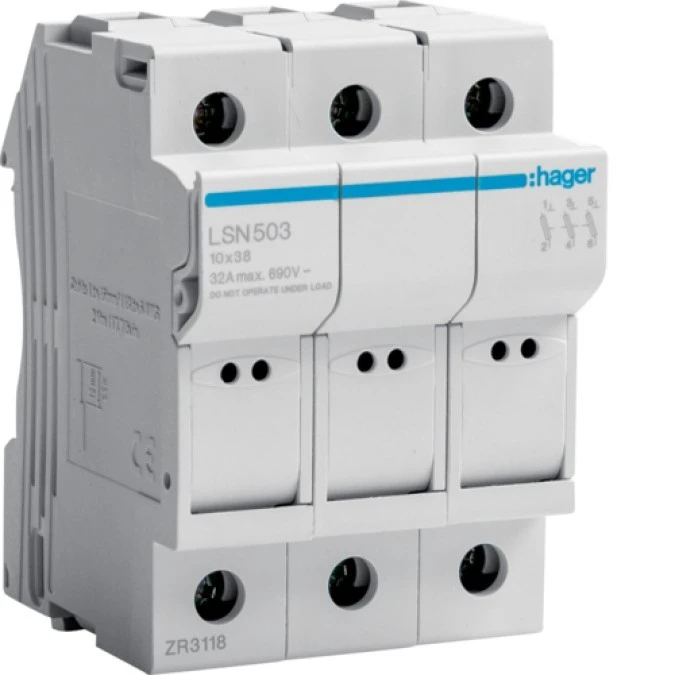 Modułowa podstawa bezpiecznikowa 3P 3P 10x38mm 32A 690VAC LSN503