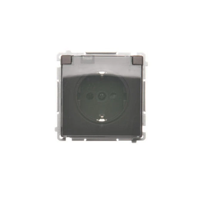 Simon Basic Gniazdo wtyczkowe Schuko do wersji IP44 z przesłonami (moduł) 16A, 250V~,zaciski śrubowe czekoladowy. Klapka transpa