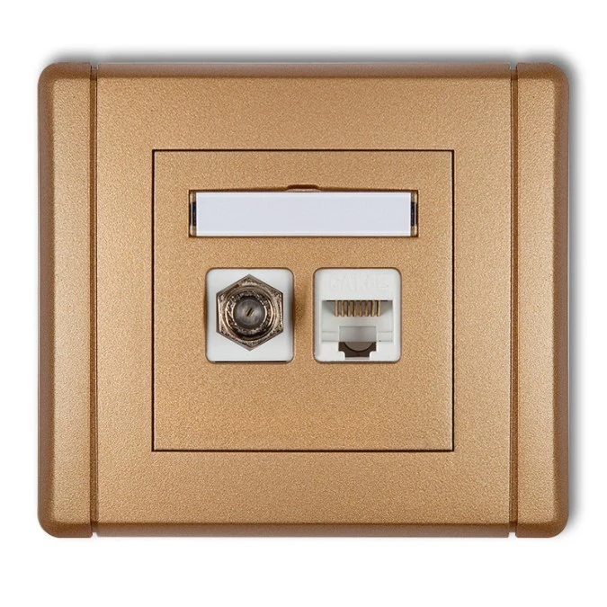 FLEXI Gniazdo antenowe pojedyncze typu F (SAT) + gniazdo komputerowe pojedyncze 1xRJ45 kat. 5e 8-stykowe złoty metalik 8FGFK-1