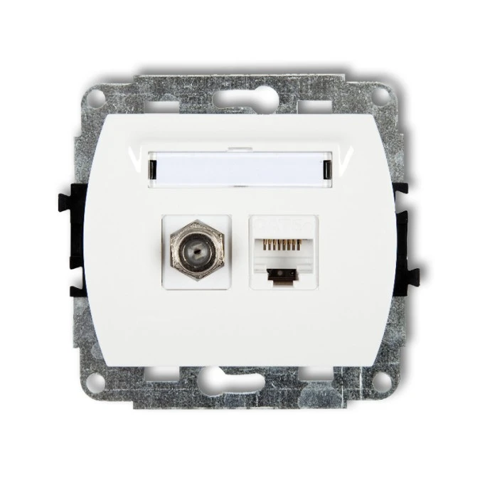 TREND Gniazdo antenowe pojedyncze typu F (SAT) + gniazda komputerowe pojedyncze 1xRJ45 kat. 5e 8-stykowy biały GFK-1