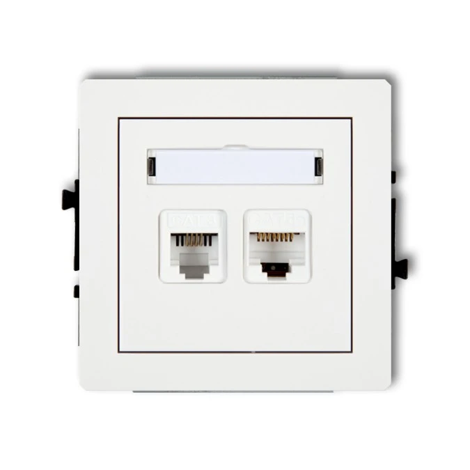DECO Gniazda telefoniczne pojedyncze 1xRJ11 + komputerowego pojedynczego 1xRJ45, kat. 5e, 8-stykowy, beznarzędziowe biały DGTK