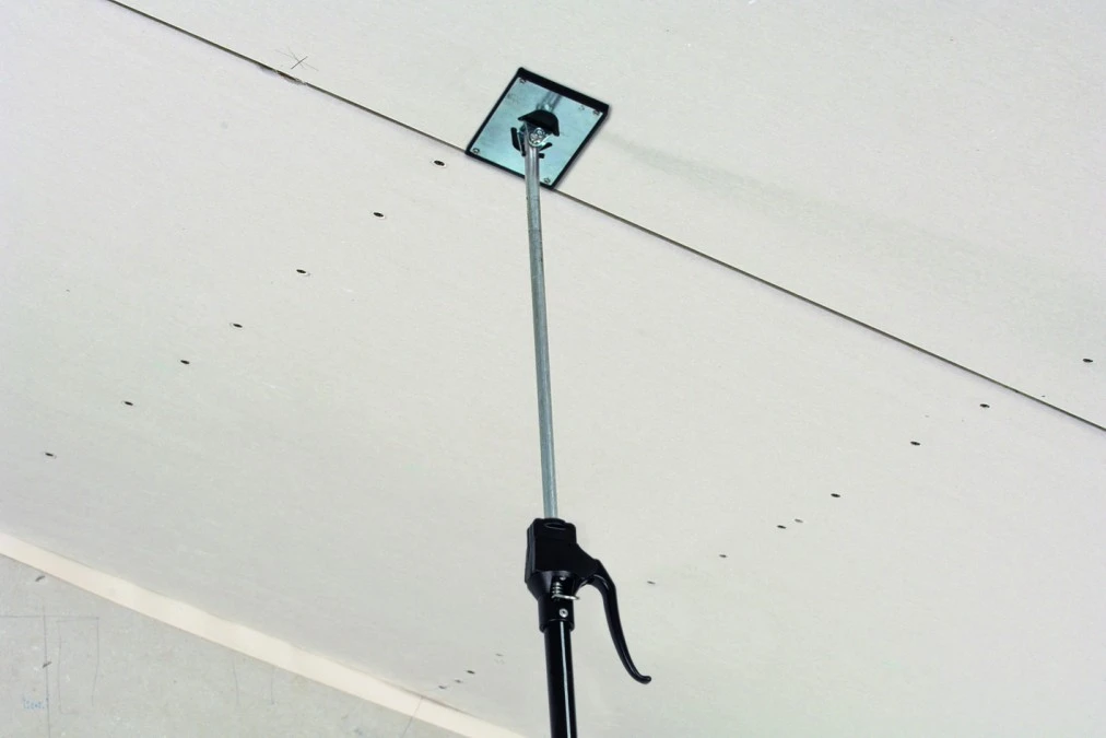 - niezbędny przy samodzielnym montażu dużych płyt na sufitach, skosach - max. obciążenie 30 kg - składany teleskopowo od 1,6 do 2,9 m, ustawienie zgrubne poprzez rurę wewnętrzną, ustawienie dokładne poprzez mechanizm pompujący - opakowanie: naklejka