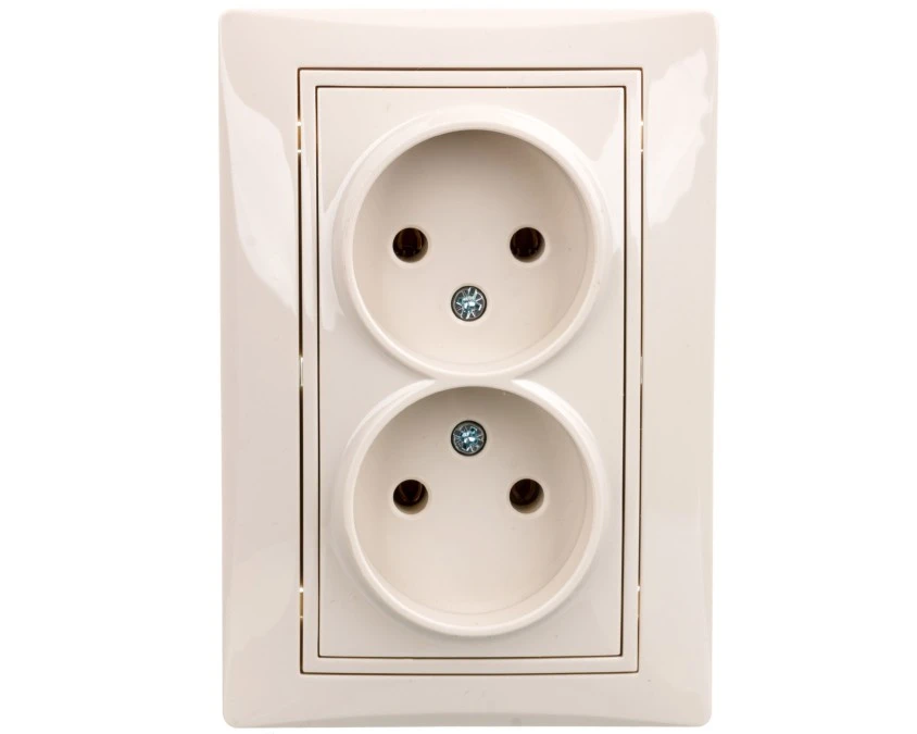 DOMO Gniazdo podwójne bez uziemienia kompletne śrubowe 16A 250V kremowy 011280103 24800