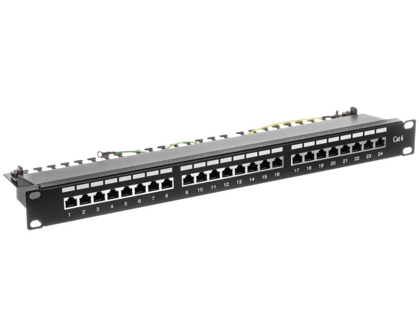 Patch panel kompletny 19 cali 24x RJ45 S/FTP kat. 6 1U z tacką czarny (RAL 9005) DN-91624S-EC
