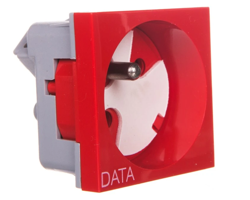 Gniazdo pojedyncze 250VAC 16A z/u z kluczem czerwone 45x45mm, QP 45X45 D_BB