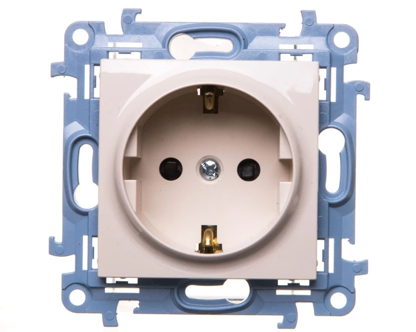 Simon 10 Gniazdo pojedyncze SCHUKO z przesłonami kremowe 16A 250V IP20 CGSZ1Z.01/41