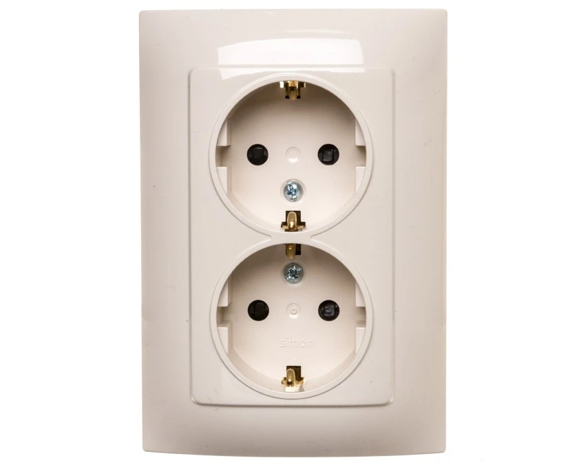 Simon 10 Gniazdo podwójne SCHUKO z przesłonami kremowe 16A 250V IP20 CGSZ2Z/41