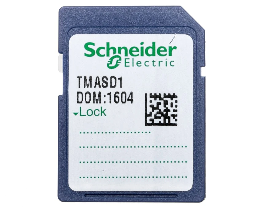 Karta pamięci TMASD1 to opcjonalne wyposażenie dostępne dla sterowników logicznych Modicon M221 i M221 Book. Służy do tworzenia kopii zapasowych i przesyłania aplikacji, ładowania oprogramowania układowego, rejestrowania danych. M ożna ją również wykorzystać do powielania aplikacji między kontrolerami. Ma pojemność 256 MB. Sterowniki Modicon M221 pozwalają osiągąć wzorcową wydajność, jednocześnie zwiększając rentowność, dzię ki intuicyjnemu oprogramowaniu EcoStruxure Machine Expert Basic.