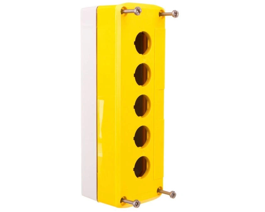 pokrywa pusta żółta z jasnoszarą podstawą, 5 otworów. rodzina produktów: Harmony XALK - typ produktu: pusta stacja sterująca - opis skrócony: XALK - przeznaczenie urządzenia: do jednostek sterujących i sygnalizacyjnych XB5 O 22 mm - zastosowanie kasety sterowniczej: funckja zatrzymania awaryjnego, funkcja wyłączania alarmu - wejście kablowe: 2 otwory wypychane dla dławików kablowych Pg 13 i ISO M20, zakres obsługiwanych średnic: zwycięstwo . Stworzona dla sektora przemysłowego i usługowego, ta rodzina kaset sterowniczych łączy w sobie prostotę instalacji z kompaktowym rozmiarem i elastycznością ... Idealnie nadaje się do zastosowań wymagających wysokiej odporności na środki chemiczne i/lub podwójnej izolacji elektrycznej.... Zastosowanie: - Przemysł: żywność i napoje, przemysł chemiczny, papiernie, zastosowania morskie, Sektor usługowy i infrastruktura: producenci rozdzielnic elektrycznych, żywność i napoje, myjnie samochodowe..