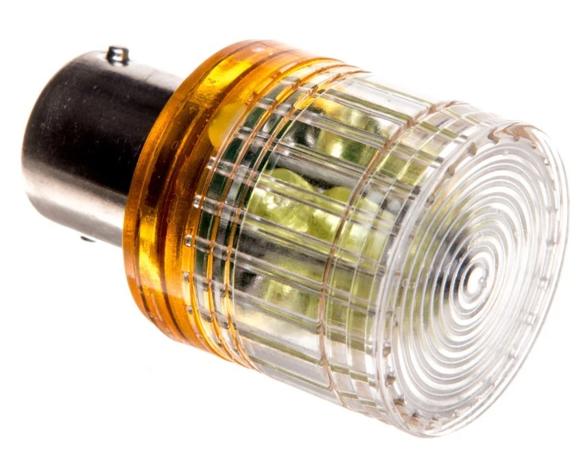 Dioda LED do kolumn świetlnych IK na napięcie 24V AC/DC, błyskająca. Klosz z poliwęglanu, trzonek mosiężny. Żółta.