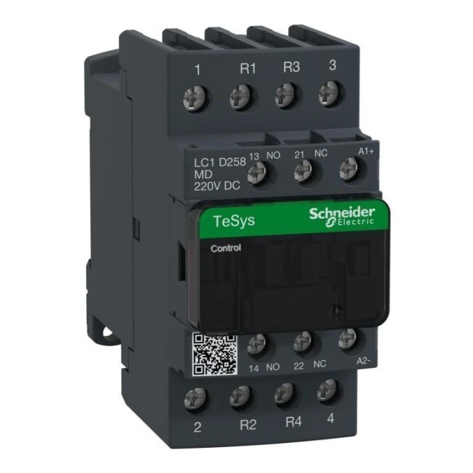 Stycznik TeSys D, 4-biegunowy (2NO+2NC), do zastosowań z obciążeniami nieindukcyjnymi do 40A/690V AC-1. Posiada cewkę 220V DC z modułem przeciwprzepięciowym, wbudowane styki pomocnicze 1NO+1NC (z certyfikatem lustrzanym NC), podłączenie za pomocą zac isków śrubowych. Przy prędkościach roboczych do 3600 cykli na godzinę i temperaturą do 60°C zapewnia wysoką niezawodność i trwałość. Kompaktowy (szerokość 45 mm), montaż na szynie DIN lub mocowanie śrubowe. Produkt posiada certyfikaty wielu standardó w (IEC, UL, CSA, CCC, EAC, Marine), zgodność z Green Premium (RoHS/REACh).Green Premium pozwoli spełnić Twoje zobowiązania w zakresie zrównoważonego rozwoju, zapewniając produktom zgodność z przepisami dotyczącymi ochrony środowiska, takimi jak RoHS i REACH, a także doskonałą przejrzystość w kwestii ujawniania informacji o środowisku i instrukcji dotyczących zakończenia eksploatacji