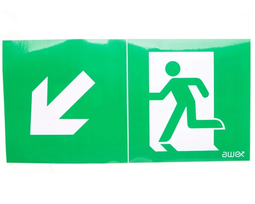 Piktogram 125x250 PS22 obrotowa strzałka człowiek w drzwiach logo awex (ISO7010)