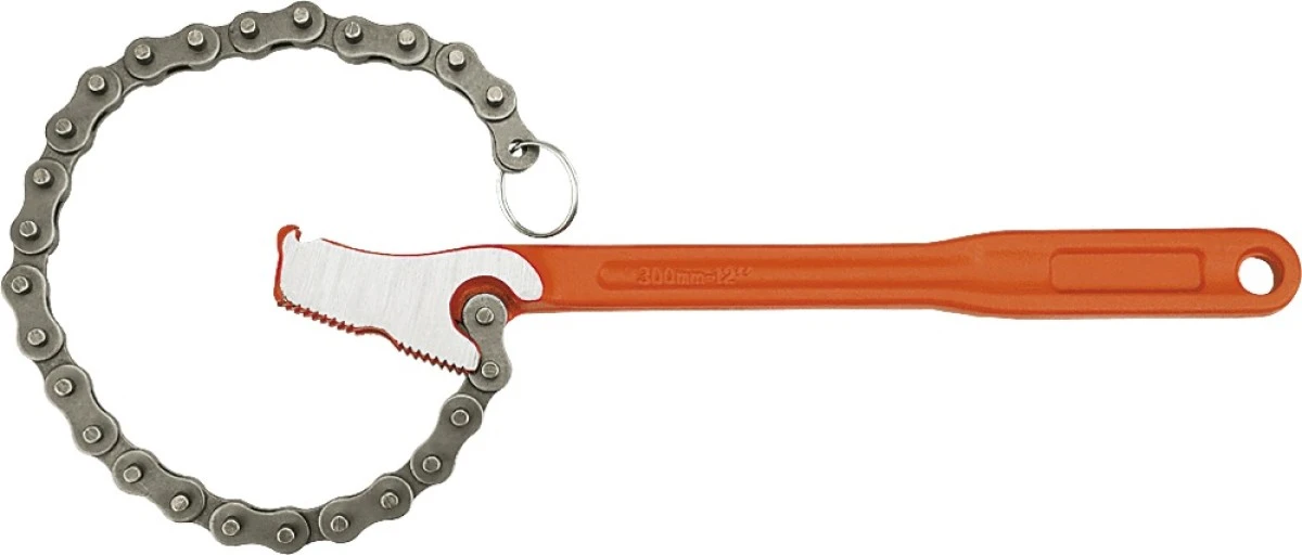Klucz łańcuchowy do rur TOPEX (nr ref. 34D035) o długości 300 mm i zakresie 115 mm. Łańcuch wykonany z wysokiej jakości stali chromowo-wanadowej, zapewniającej długoletnią trwałość produktu umożliwia pracę w każdych warunkach. Marka TOPEX skierowana jest do majsterkowiczów.