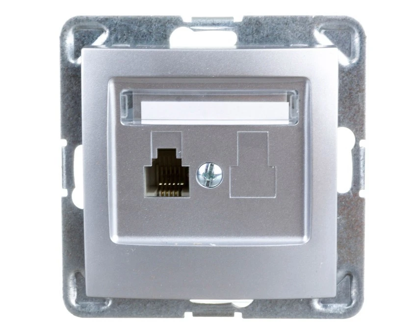 IMPRESJA Gniazdo telefoniczne pojedyncze RJ11 srebrne GPT-1Y/m/18