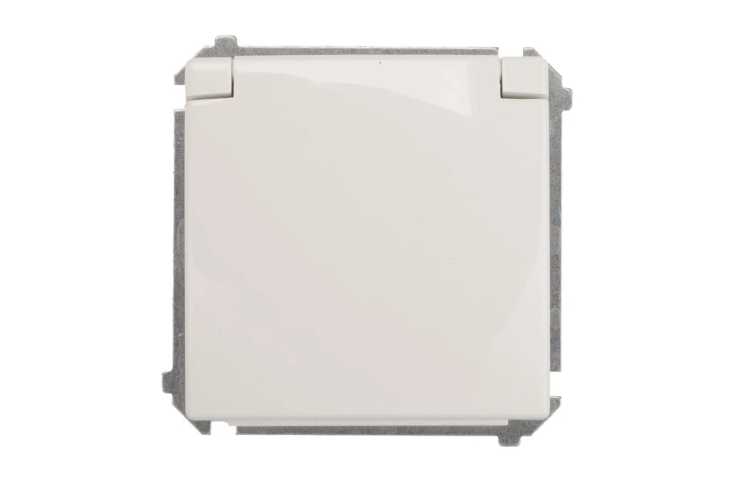 Simon Basic Gniazdo bryzgoszczelne z/u IP44 z przesłoną torów i klapką białe BMGZ1Bz.01/11