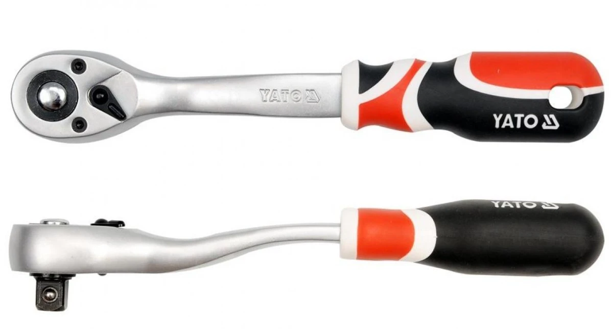 Grzechotka wygięta do nasadek 1/2'' o długości 255 mm. Grzechotka wykonana jest ze stali chromowo - wanadowej CrV6140. Grzechotka jest wyposażona w system QUICK RELASE oraz mechanizm 72 zębów. Minimalny skok roboczy wynosi 5°