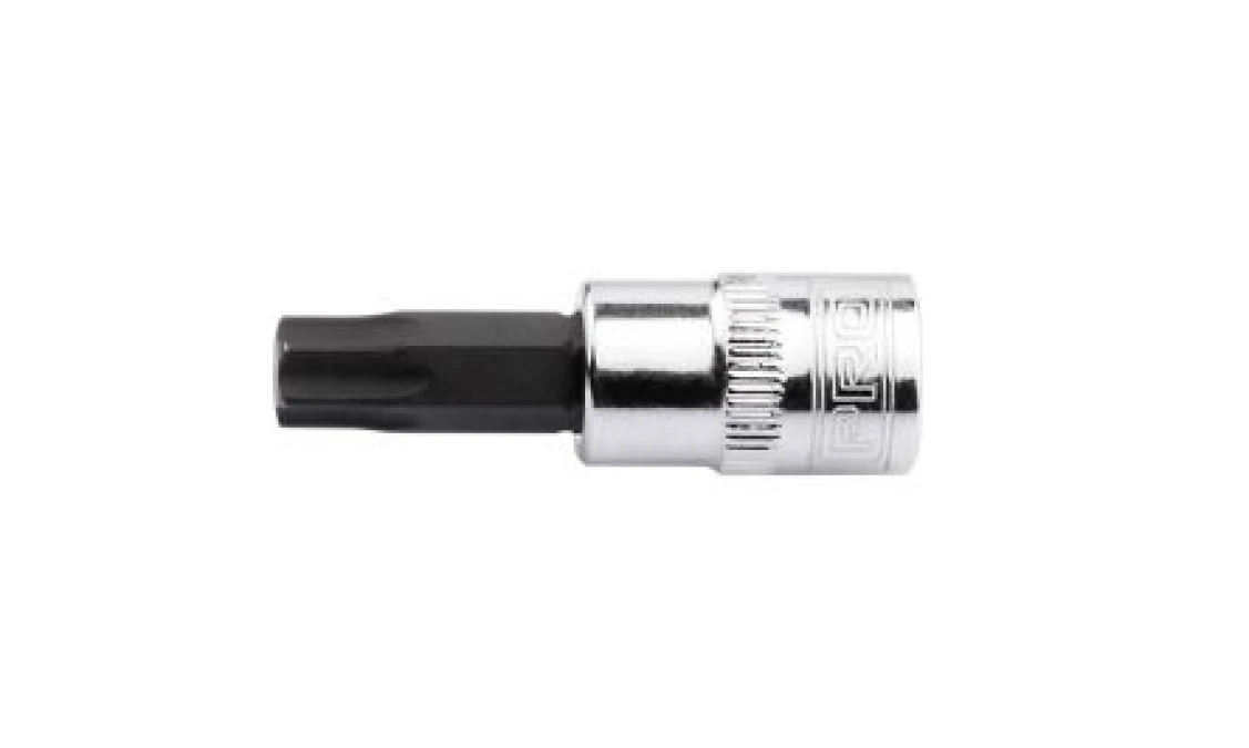 Rozmiar gniazda = T27 Rozmiar napędu = 1/4 cala Typ gniazda = Torx Typ napędu = Kwadratowy Długość całkowita = 55 mm Długość końcówki = 18 RS PRO 1/4" Drive Torx Socket Bit. Introducing 1/4" drive torx socket bits from our own brand RS PRO, a selection of high quality and reliable torx bit sockets to choose from, designed for use with wrench and driving tools with a 1/4" drive. The torx bit is manufactured from chrome vanadium molybdenum and is fixed to the socket, providing a strong and reliable wrench socket accessory that can be used for various tasks to a high standard. The sockets are manufactured from chrome vanadium, providing a durable socket that can withstand extensive use in a range of working environments. The sockets also feature a mirror chrome finish offering a stylish and professional aesthetic whilst offering excellent corrosion resistance properties. RS PRO 1/4" torx socket bits are available in a variety of sizes and make an excellent addition to any socket set, ideal for applications requiring screws with a torx head to be tightened and loosened by hand. The compact design of the torx bit ensures it will fit securely inside the screw head, whilst enhancing the grip and torque, allowing you to work quickly with ease and precision. Features and Benefits. Available in a variety of sizes ranging from T10 to T40 Manufactured from chrome vanadium steel offering enhanced strength and durability Mirror chrome finish providing a professional aesthetic with corrosion resistance Suitable for a wide range of applications Torx bit head to provide a secure grip and torque with torx screw heads Suitable for 1/4 drive wrenches. Application. Socket bits and socket accessories offer increased versatility without the need for the user to purchase new and more expensive tools, making such accessories a cost-effective solution when requiring tools that need to be used on various applications. The interchangeable torx bits allow you to maximise the potential use of a wrench, without having to purchase additional torx screwdrivers in different sizes. Torx sockets and socket accessories are commonly used in a wide range of applications including: Mechanical / Automotive Construction Engineering DIY Maintenance and repair. FAQs. Why use a socket wrench and torx socket bit rather than a torx screwdriver?. Although they can be used for similar applications, using a socket and wrench has many advantages. The use of interchangeable sockets ensures that only one wrench is required to work with various sized fasteners, saving both time and money. The 6-point head also ensures a secure and reliable connection to the fastener with each point producing a strong grip with increased torque. The combination of a wrench and socket bit provides a much more versatile hand tool that can be used in a wide range of applications. What sizes are available?. RS PRO 1/4 torx socket bits are available in the following sizes: ; 1923778 1923778 - 1/4 DR.TORX SOCKET BIT-T10 ; 1923779 1923779 - 1/4 DR.TORX SOCKET BIT-T15 ; 1923781 1923781 - 1/4 DR.TORX SOCKET BIT-T20 ; 1923782 1923782 - 1/4 DR.TORX SOCKET BIT-T25 ; 1923783 1923783 - 1/4 DR.TORX SOCKET BIT-T27 ; 1923784 1923784 - 1/4 DR.TORX SOCKET BIT-T30 ; 1923785 1923785 - 1/4 DR.TORX SOCKET BIT-T40. What is the overall length of the socket bit?. The overall length of the RS PRO 1/4 torx socket bits in this range is 37 mm.