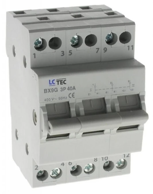 Prezentowany produkt to przełącznik modułowy serii BX9G marki LC TEC. Służy do wyboru źródła zasilania lub wyboru obwodu elektrycznego albo ich całkowitego odłączania.