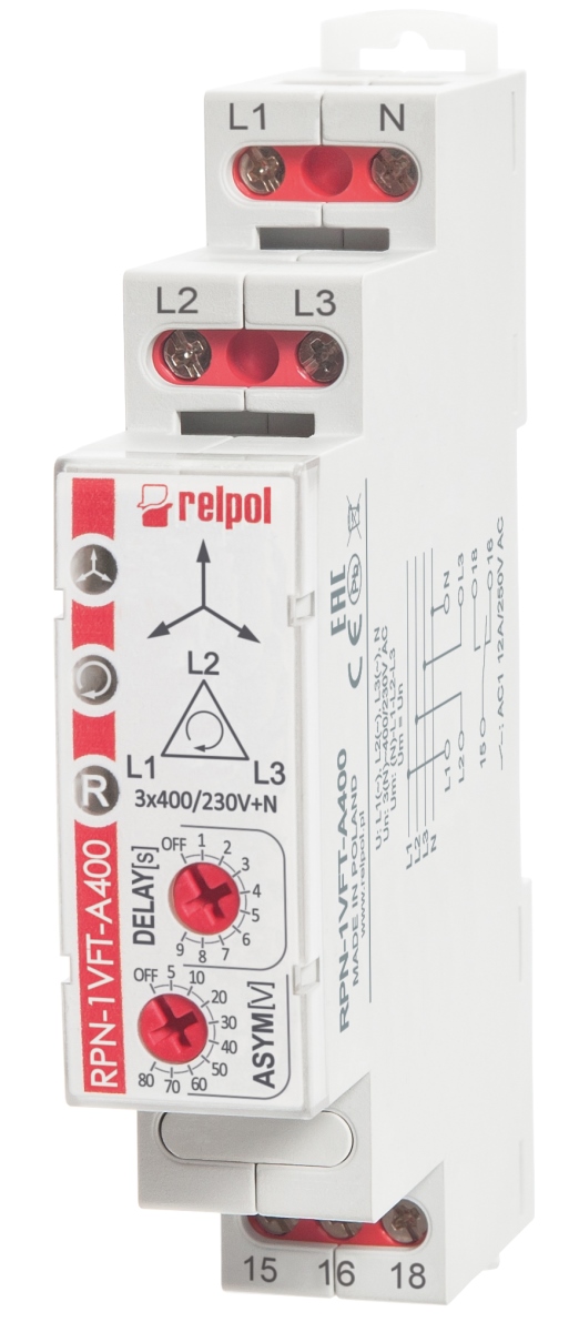 Przekaźnik do nadzoru napięcia AC w sieci 3-fazowej 3 (N) - 400/230 V.