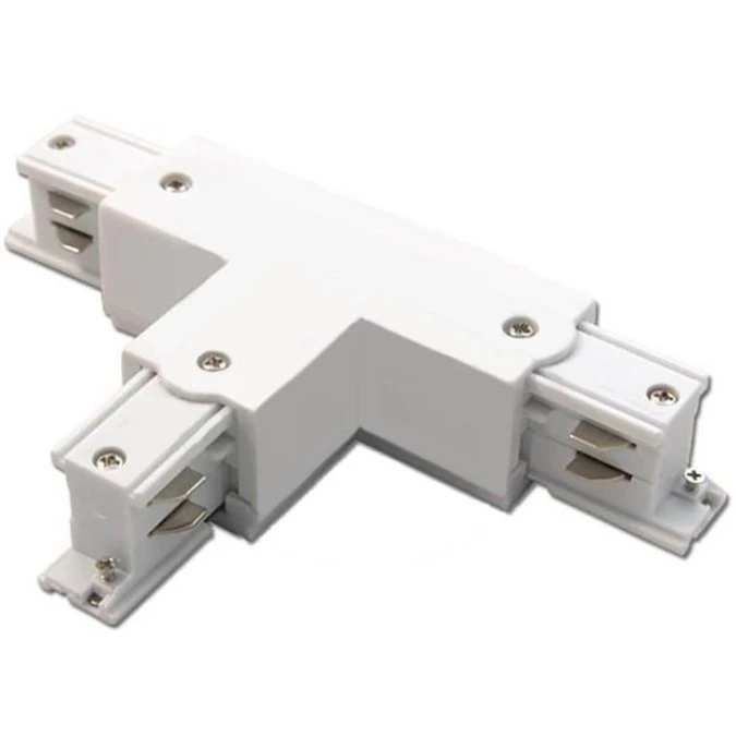 Łącznik potrójny trójnik marki LVT w kolorze białym przeznaczony do listw szynowych trójfazowych. Umożliwia łączenie ze sobą szynoprzewodów szeregowo oraz pod kątem 90°. Stosowanie łączników pozwala przedłużyć swój system szyn do lamp szynowych.
