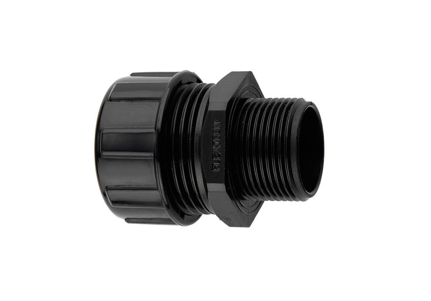 Proste, stałe, metryczne złącze kanałowe Flexicon odpowiednie do wyrzutów lub wlotów gwintowanych. Zacisk mocujący zapewnia wytrzymałość na rozciąganie 20 kg przy użyciu FPAS21.
