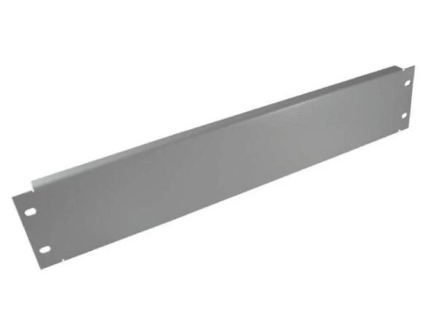 Osłona maskująca puste przestrzenie w szafach rack do mocowania na belkach nośnych, czołowych szafy teleinformatycznej. Grubość 1,25mm, kolor jasnoszary (RAL 7035), materiał stal. Wysokość 90mm (2U), szerokość 482mm.
