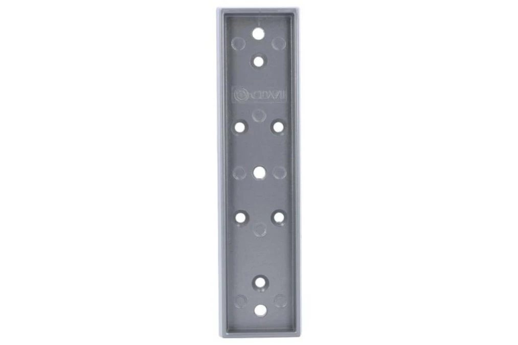 Uchwyt montażowy płytki zaczepowej do skrzydła drzwi. Dzięki temu elementowi montaż jest estetyczny i nie wymaga przewiercania na wylot skrzydła drzwi. Zastosowanie do każdego typu instalacji, gdzie drzwi otwierają się na zewnątrz.