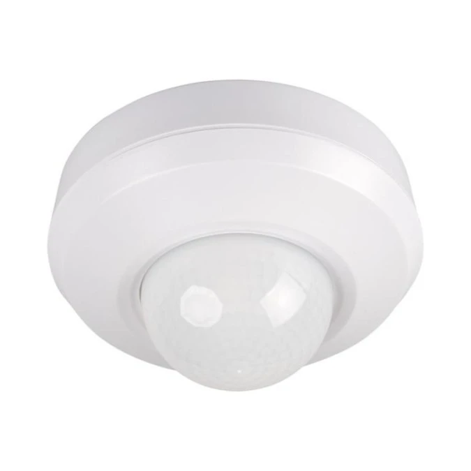 Czujnik ruchu 3xPIR, Średnica [mm]: 111, Czas działania czujnika [sekunda-minuta]: 10-30, Częstotliwość znamionowa [Hz]: 50, Kąt działania czujnika [°]: H360, Klasa ochronności przed porażeniem elektrycznym: II, Kolor: biały, Maksymalny czas działania [min]: 30, Materiał: tworzywo sztuczne, Miejsce montażu: do nadbudowania na suficie, Miejsce montażu: do wbudowania w sufit, Miejsce zastosowania: wewnątrz i na zewnątrz, Mikroprzerwa pomiędzy stykami przekaźnika: 1, Minimalny czas działania [s]: 10, Moc maksymalna [VA]: 2000, Napięcie znamionowe [V]: 220-240 AC, Nastawa poziomu natężenia oświetlenia, przy którym czujnik wykrywa ruch [lx]: 3-2000, Rodzaj czujnika: 3xPIR, Rodzaj przyłącza: kostka przyłączeniowa, Stopień IP: 44/20, Zakres przekrojów stosowanych przewodów [mm2]: 0,75÷1,5, Zakres temperatury otoczenia, na którą może być narażony wyrób [°C]: -20÷40, Zasięg czujnika [m]: max 20, Wysokość MAX [mm]: 74.