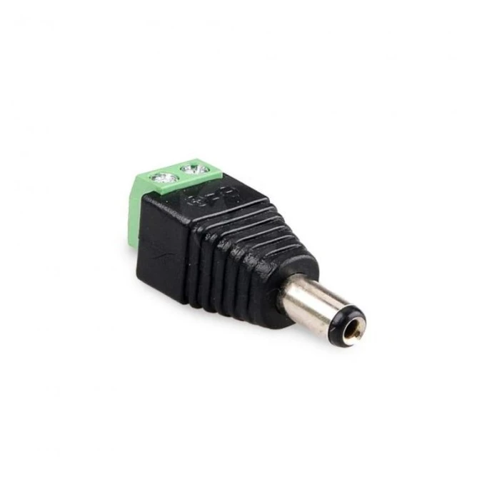 Złącze zasilające z kostką (wtyk). Konektor męski wyposażony jest we wtyk 2,1/5,5mm.
