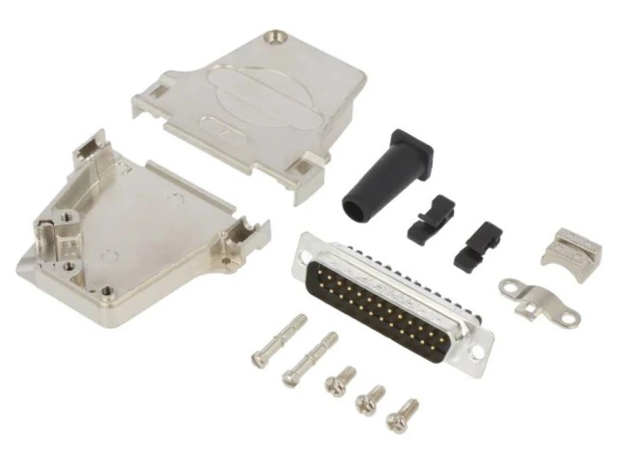 Producent: Amphenol Typ: D-Sub Ilość pinów: 25 Orientacja: katowa 45 Montaż: na przewód Gwint: UNC 4-40 Średnica zewnętrzna przewodu: 8...12,5mm