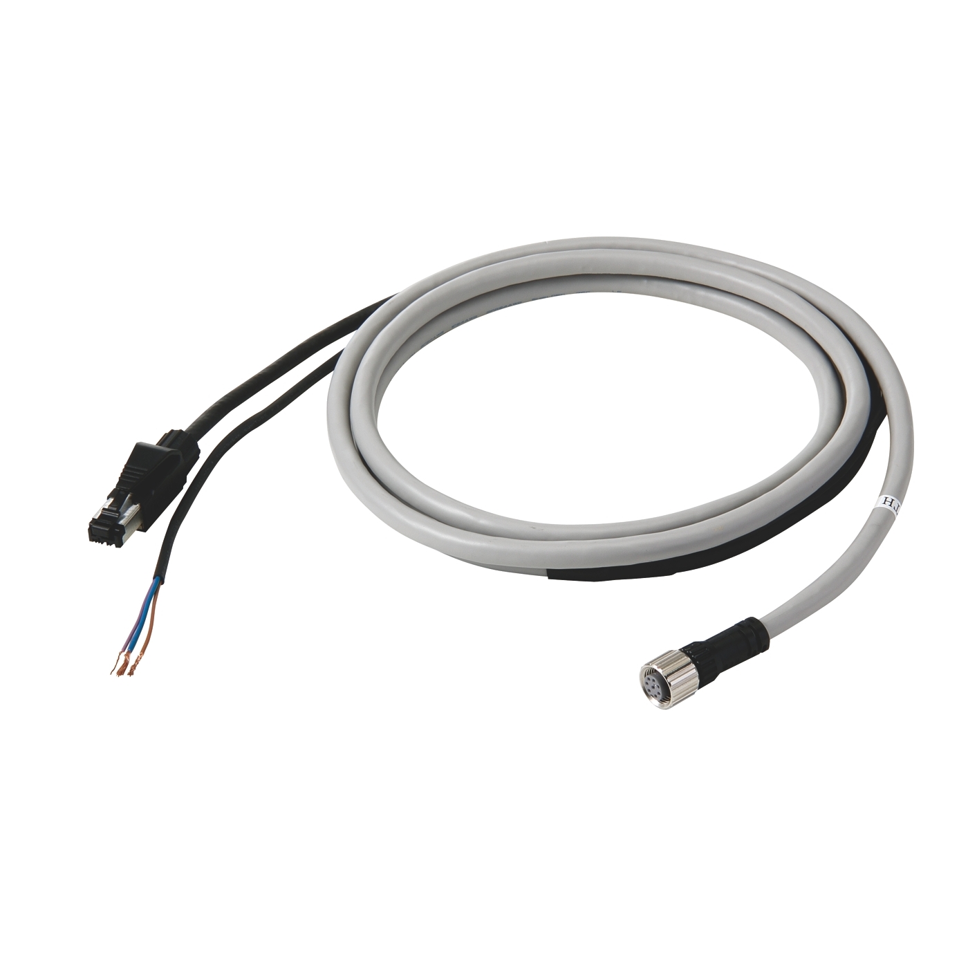 Kabel Ethernet i zasilacz do czytania/zapisu ID firmy Omron ma długość 5 m i specjalne złącze M12 - RJ45.