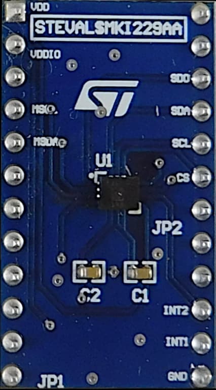 Płytka adaptera STMicroelectronics LSM6DSO16IS do standardowego gniazda DIL24, zaprojektowana w celu ułatwienia oceny urządzeń MEMS z serii produktów LSM6DSO16IS.