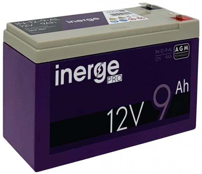 Akumulator VRLA AGM 12V 9Ah (żywotność 6-9lat) INERGE PRO IN-12-9-AL
