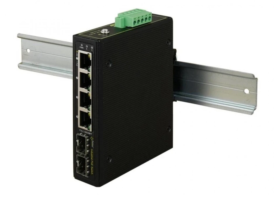 Switch przemysłowy 6 porty 4 porty PoE 10/100/1000 Mb/s, (port 1÷2) (dane i zasilanie) 2 porty 100/1000 Mb/s SFP 30 W dla każdego portu PoE, obsługa urządzeń zgodnych ze standardem IEEE802.3af/at (PoE+) Obsługa funkcji auto-learning i auto-aging adresów MAC (tablica wielkości 8K) Możliwość zasilania redundantnego Montaż na szynę DIN (TH35) Sygnalizacja optyczna Gwarancja - 2 lata od daty produkcji