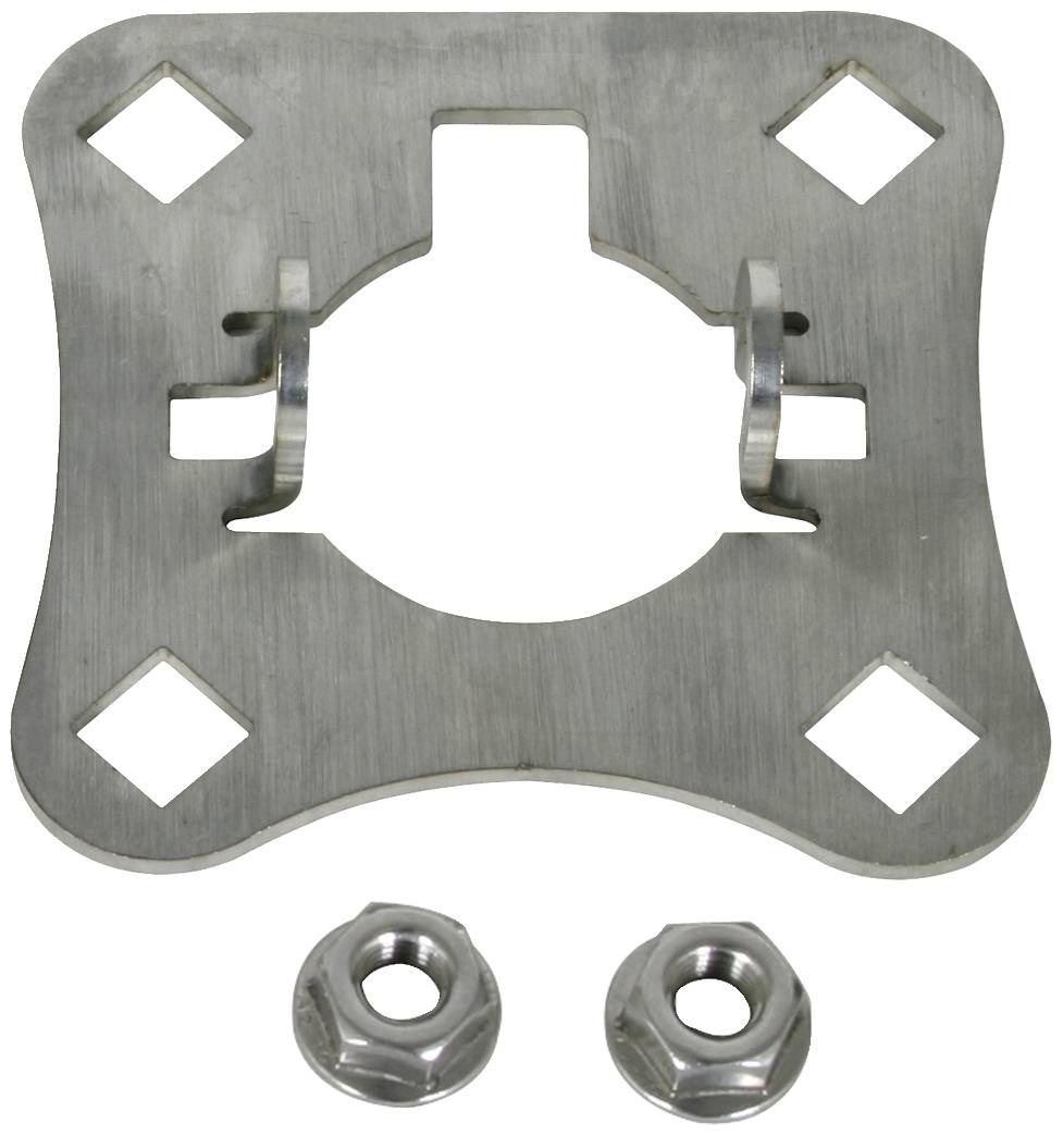 Płyta przyłączeniowa (poczwórna, z dwiema nakrętkami blokującymi) do montażu długiego przewodu HVI na rurze nośnej D 50 mm (np. art. nr 105 330, 105 331, 105 332, 105 333).