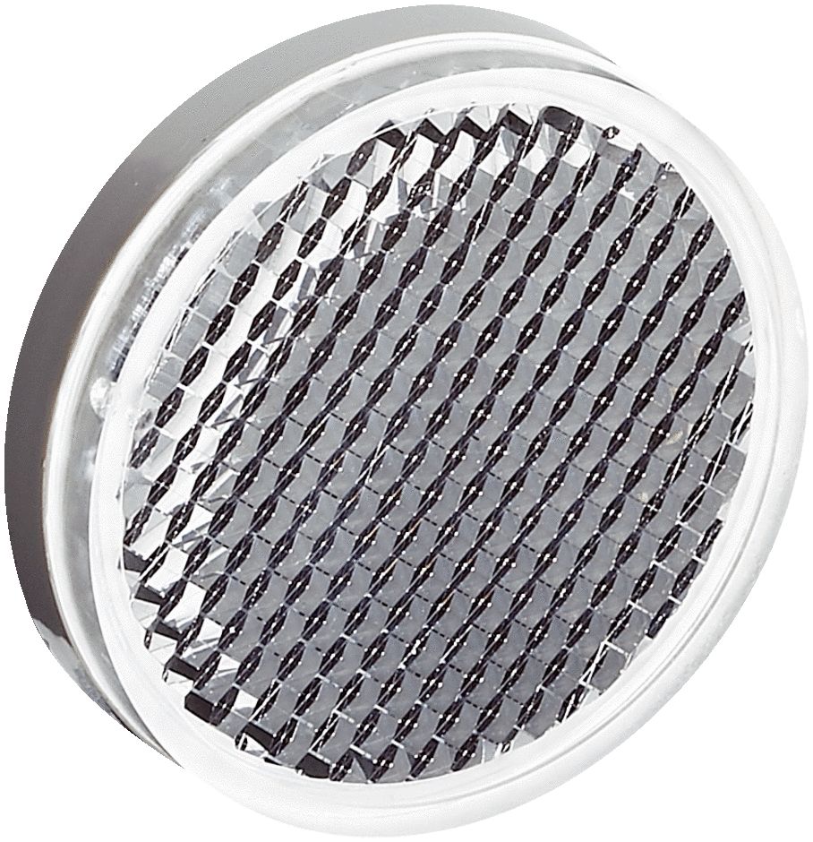 Okrągłe reflektory ze śrubą gwintowaną M5x9. Dostarczane elementy to nakrętka sześciokątna, podkładka.