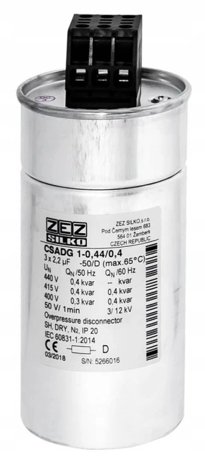 Kondensator 0,4kvar 440V Cn=3x2,19µF In=3x0,53A