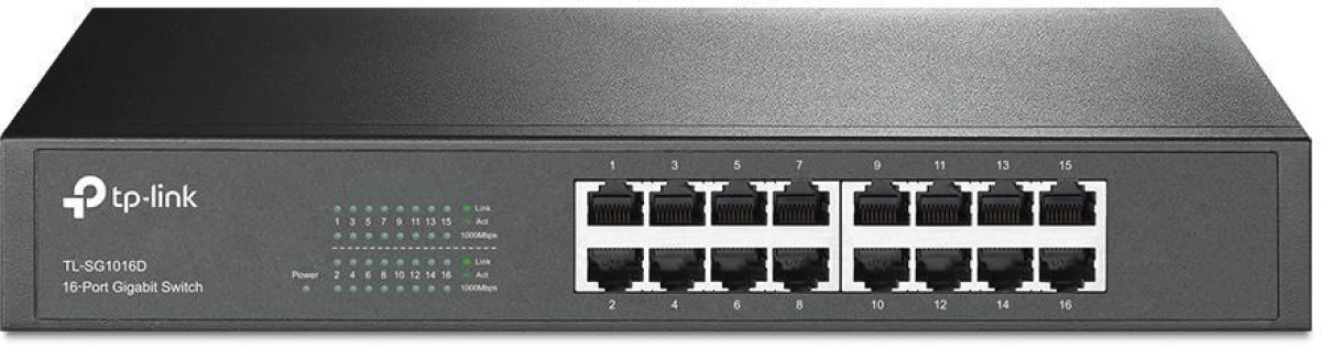 SWITCH TP-LINK TL-SG1016D Model: TL-SG1016D Rodzaj obudowy: Desktop Typ switcha: Niezarządzalny Porty GigaEthernet: 16 Port konsoli: Nie Prędkość transmisji switch: 23.8Mpps Architektura switch: Gigabit Ethernet Uwagi do gwarancji: *gwarancja 60 miesięcy dla urządzeń zakupionych po 1 października 2016. Urządzenia zakupione przed tą datą podlegają gwarancji producenta 24 misięcy. Obsługa PoE: Nie Liczba portów: 16 szt. Przepustowość urządzenia: 32 Gb/s