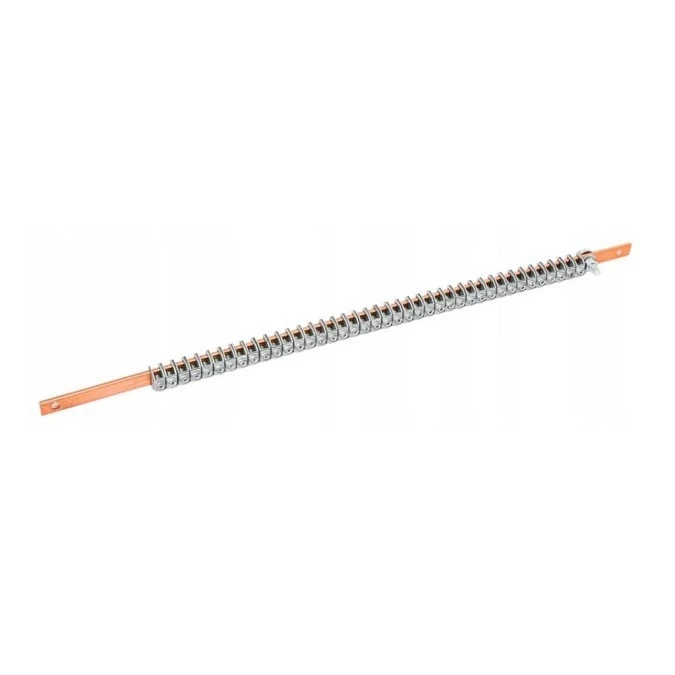 Szyna ochronna PE do systemu Zenergy dla obudów W600 Specyfikacja Długość L=470 mm 40 zacisków 16 mm2 1 zacisk M6 Szyna pasuje do obudów Zenergy ON/PT o szerokości W600