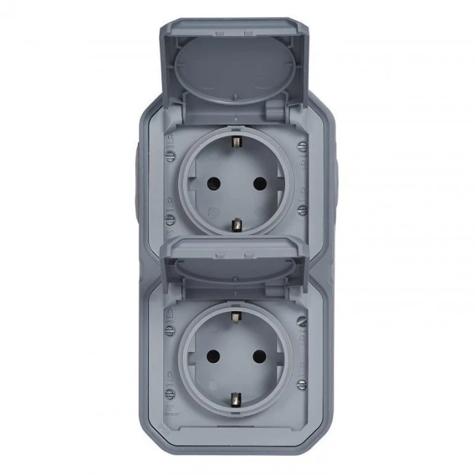 NOWE PLEXO 55 Gniazdo schuko 2x2P+Z pionowe komplet natynkowy 16A - 250V AC szare 069744L