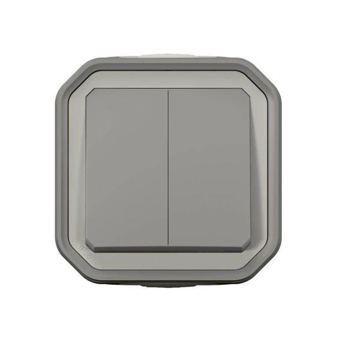 NOWE PLEXO 55 Łącznik podwójny/przycisk podwójny komplet natynkowy 10 AX - 250 V AC szary 069715L