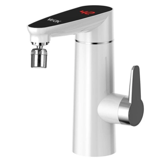 Przepływowy podgrzewacz wody łazienkowy pionowy, wyświetlacz, biały VA0203 VAYOX