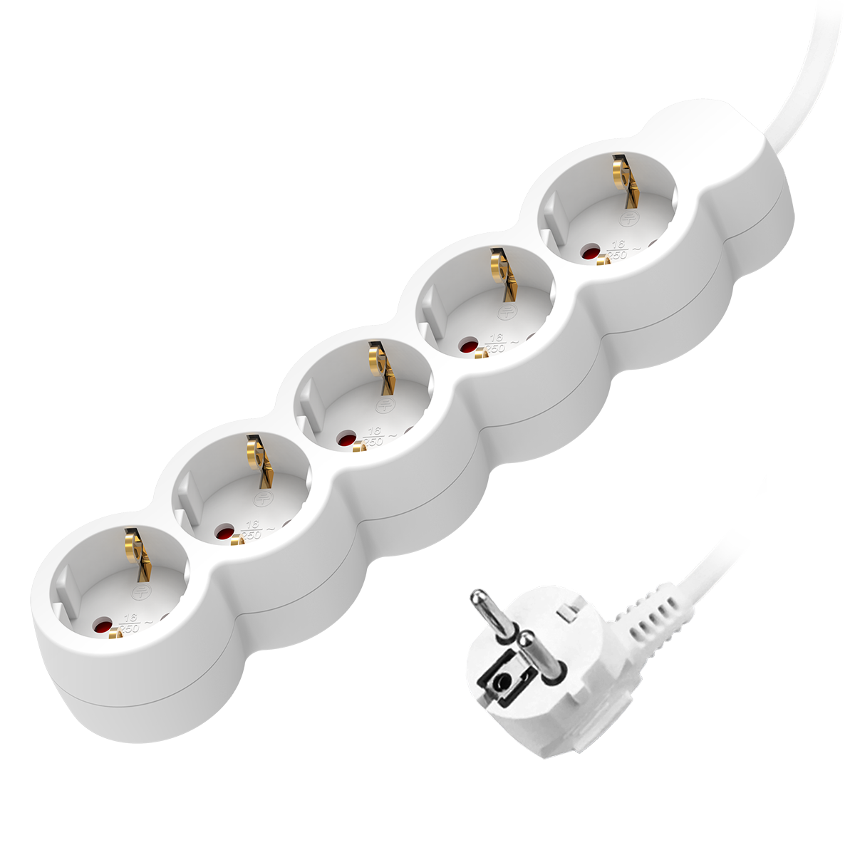 Przedłużacz 5-krotny 2P+Z (schuko). 5m H05VV-F 3x1.0mm2. Imax 10A. biały ORAE13149(GS)/W/5M