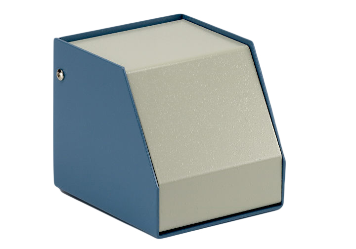 Pochyła konsola aluminiowa Hammond jest wykończona w kolorze satynowym i ma szary panel. Wentylacja konwekcyjna jest zapewniona przez szczeliny w dolnej części i zdejmowane panele tylne.