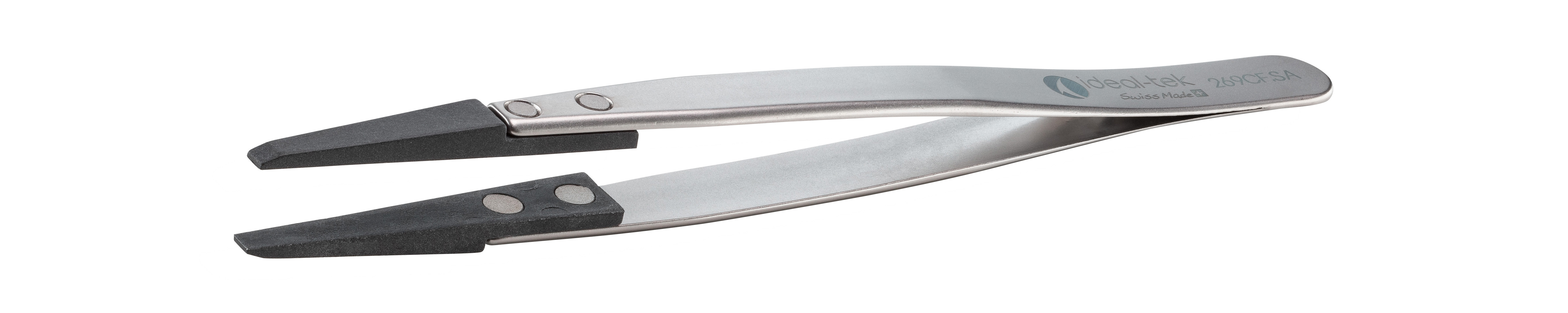 Pęseta z plastikową końcówką ideal-tek typ 269CF jest odpowiednia do zastosowań wymagających mocnego trzymania dużych i płaskich elementów.