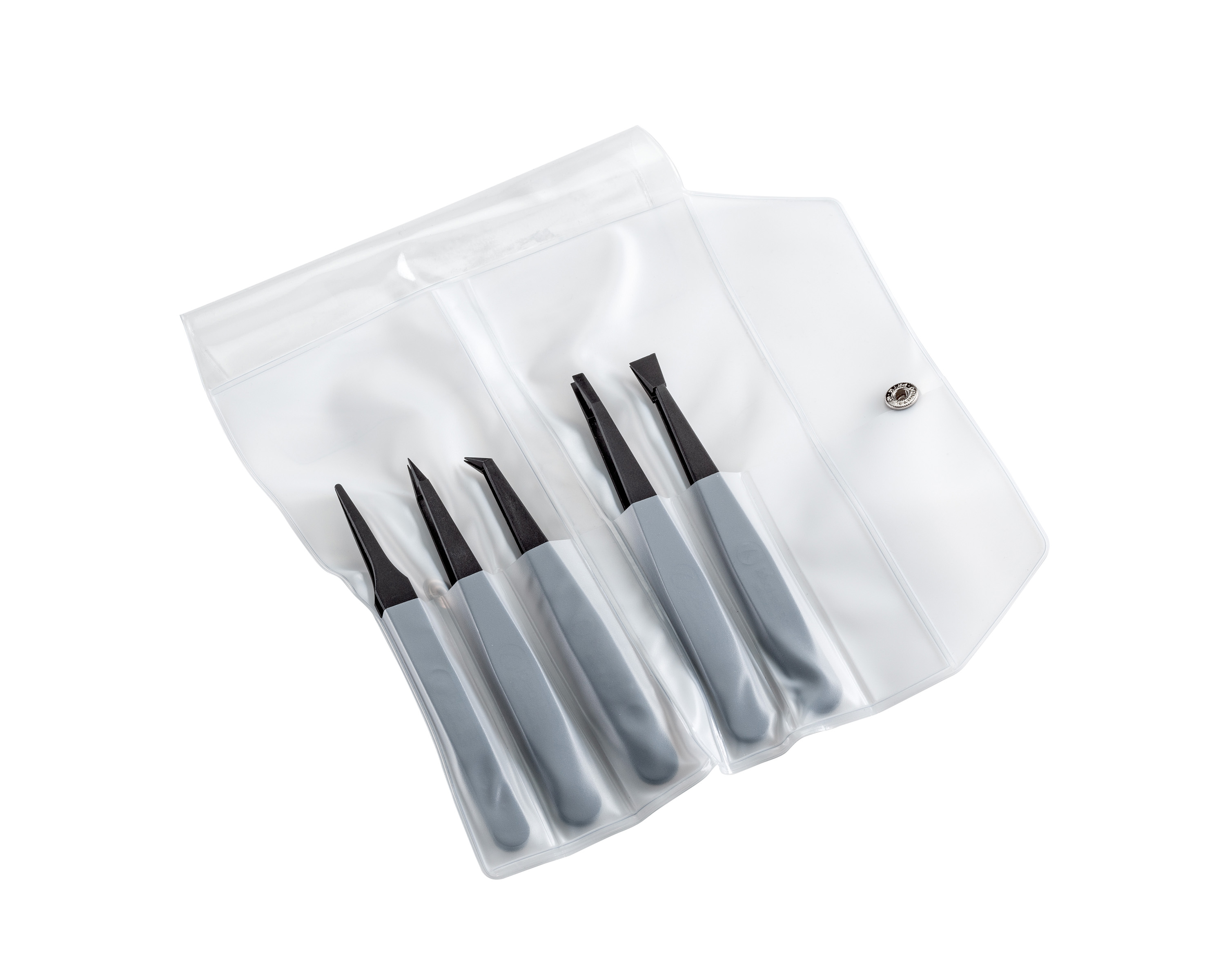 Zestaw pęset ideal-tek Full Plastic zawiera modele 702A, 707, 708, 709, 710. Wzmocniony włóknem węglowym plastik ESD PVDF zapewnia pęsecie właściwości ESD i wyjątkową odporność na zarysowania w połączeniu z doskonałą odpornością chemiczną.