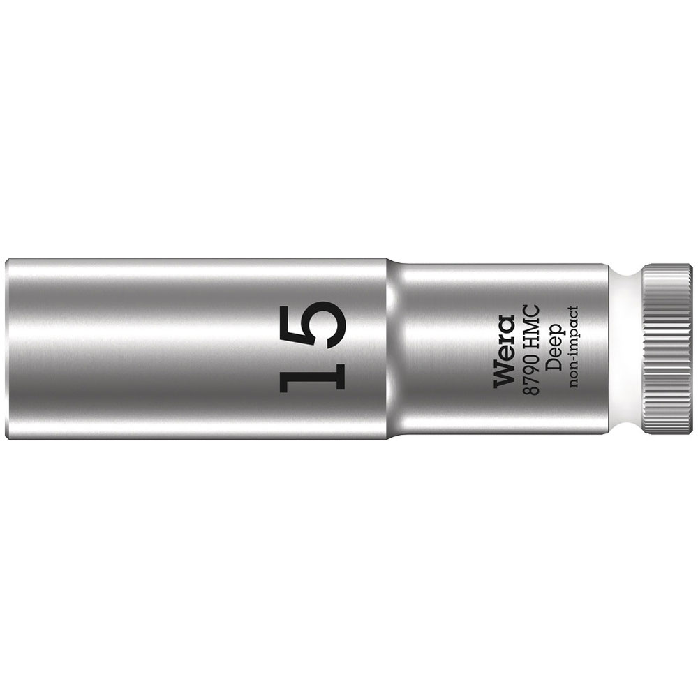 The Wera 8790 HMC Deep 1/2" socket 15 x 83mm is a long 1/2" hand and machine socket (ISO 2725 part 3) with ball intercept ring; for external hexagonal bolts and sockets.